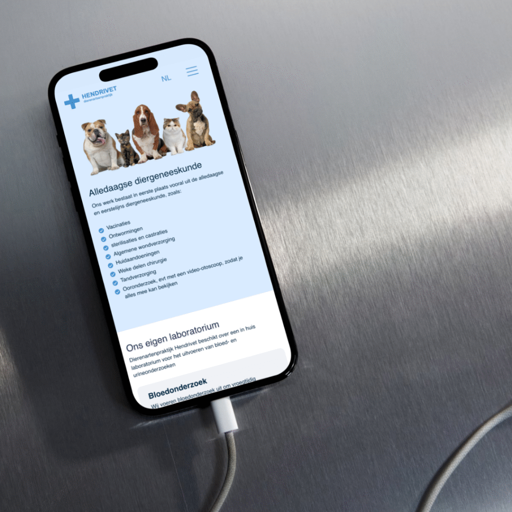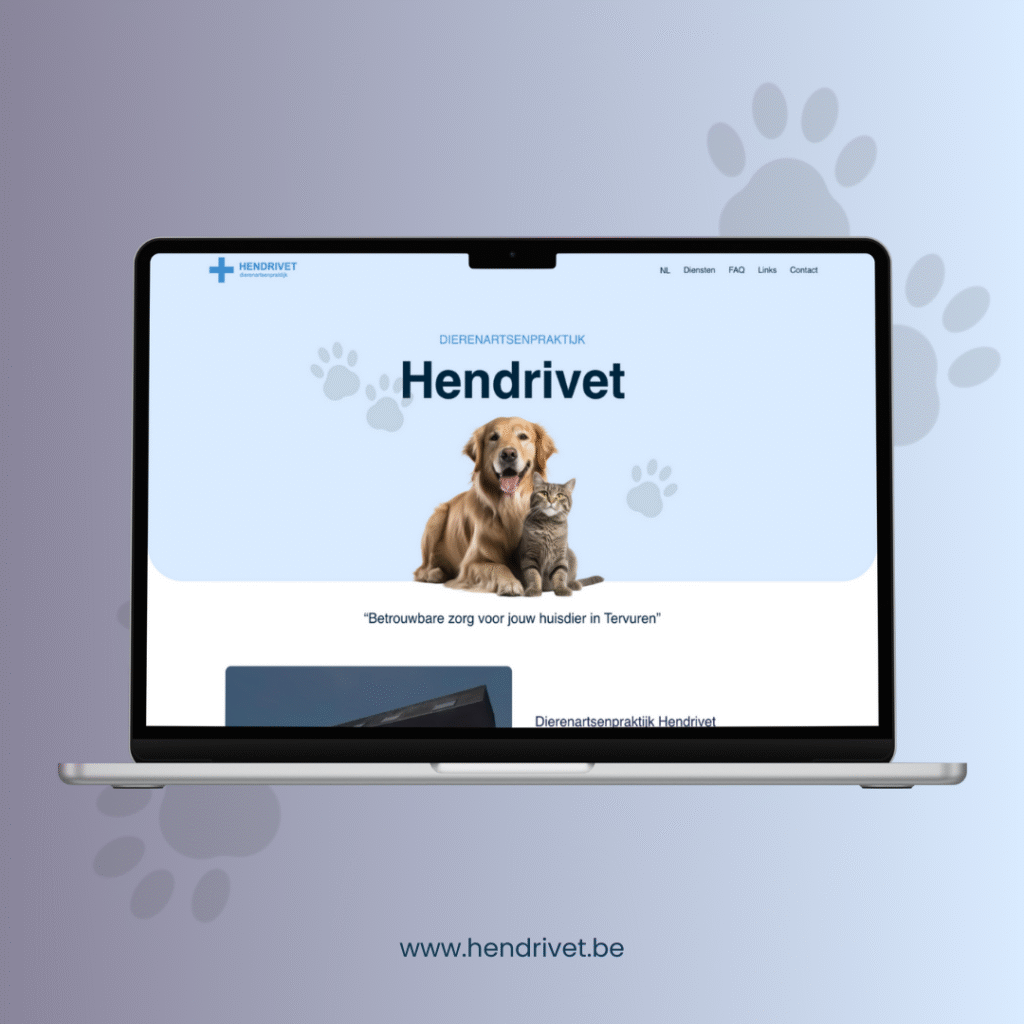 Voor Hendrivet, een toegewijde dierenartspraktijk, ontwikkelden we een moderne, gebruiksvriendelijke website die de zorg voor huisdieren centraal stelt. Het project omvatte volledig design en development, een CMS om makkelijk nieuws en tips toe te voegen, en SEO-optimalisatie voor betere online zichtbaarheid. De website is drietalig (Nederlands, Frans en Engels) opgezet, zodat alle klanten snel de juiste informatie vinden. Daarnaast koppelden we een nieuw e-mailsysteem, volledig geconfigureerd met overzet van alle bestaande e-maildata, zodat communicatie vlekkeloos verderloopt. Dankzij deze integrale aanpak helpt de nieuwe site Hendrivet om klanten beter te bedienen én online beter vindbaar te zijn.